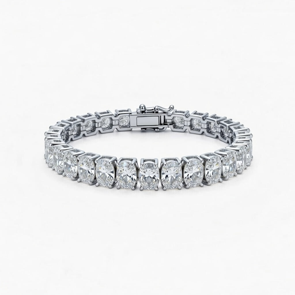 A dazzling silver bracelet featuring oval-cut crystals, exuding classic sophistication and radiant brilliance.