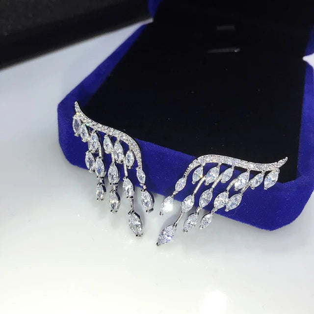 Angel Wings Diamond Earrings (925 Sterling Silver)