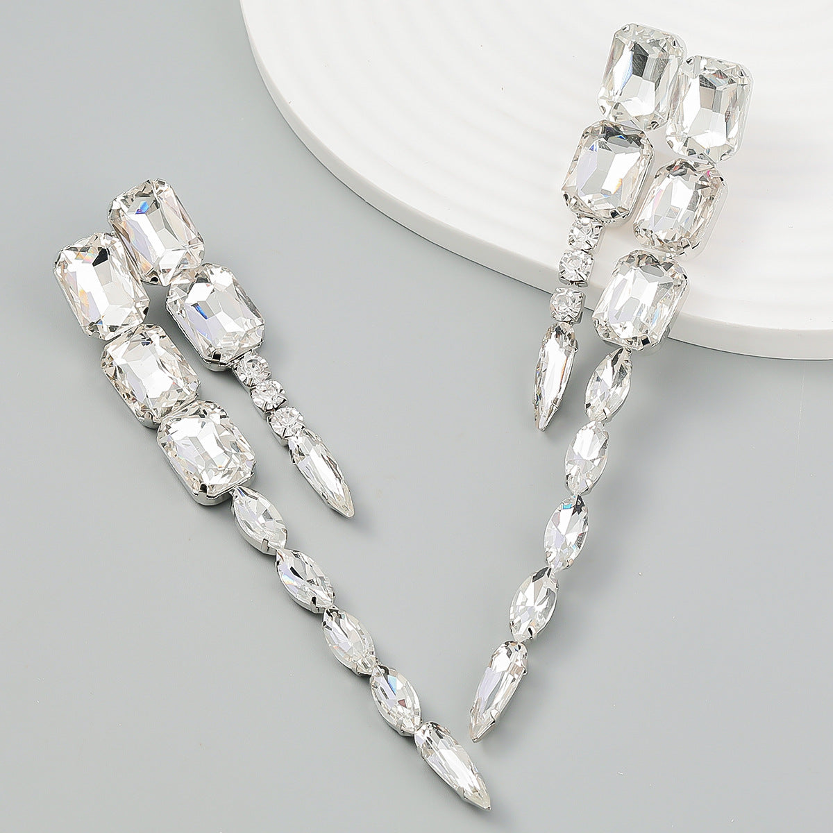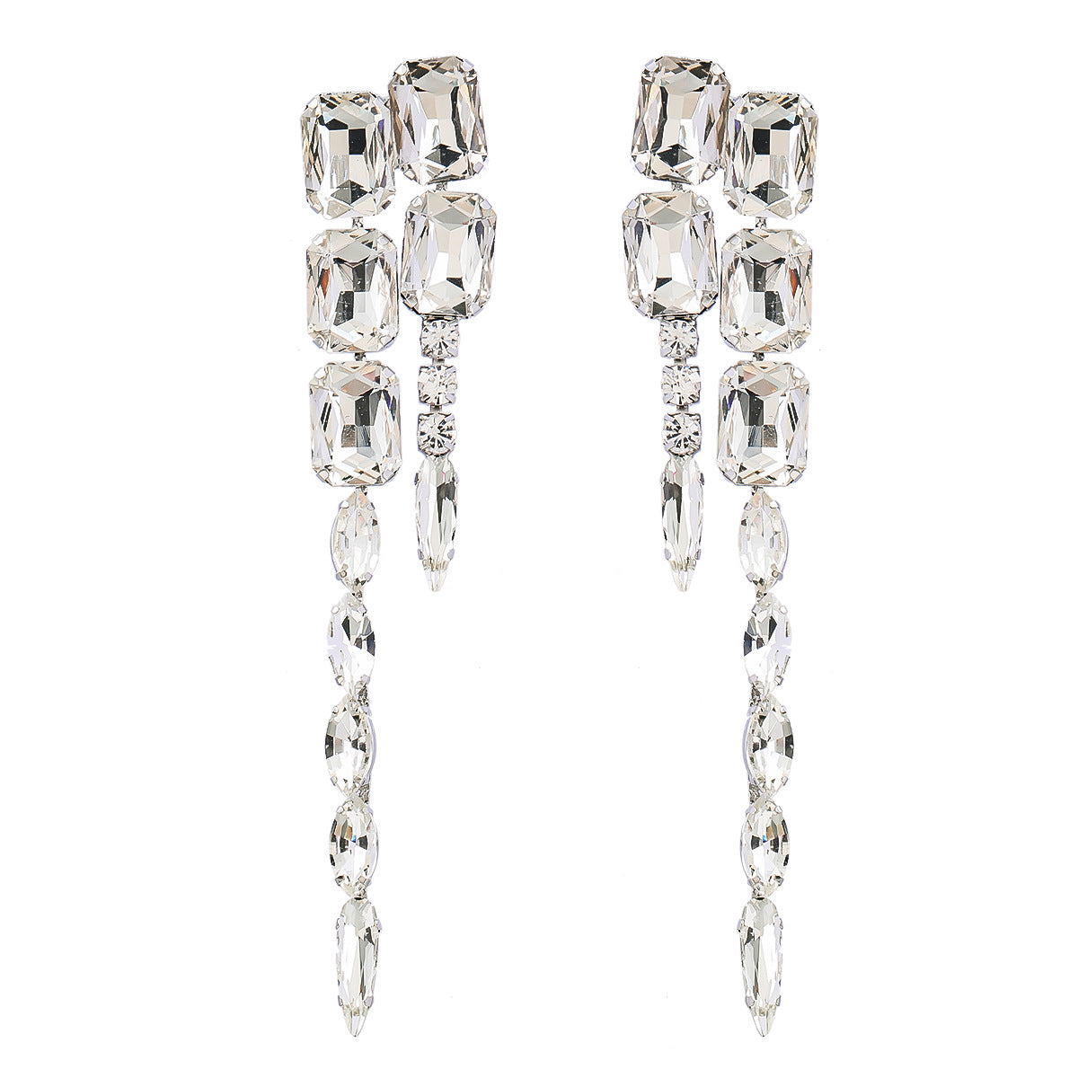 Glam any outfit up with these pierced rhinestone crystal dangle earrings. Perfect for pageants! Each Pair is Silver plated, Individually wrapped and delivered in a beautiful brand box.