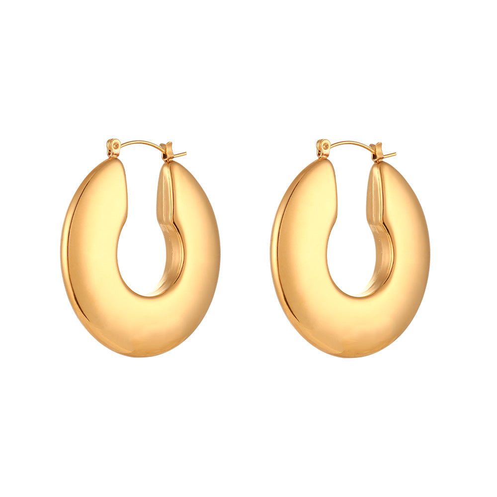 A universal fashion favorite, these puffy hoops are built to last with sturdy 18-karat micron gold plating over high-quality brass, as well as a sturdy latch back closure for long-lasting wear.