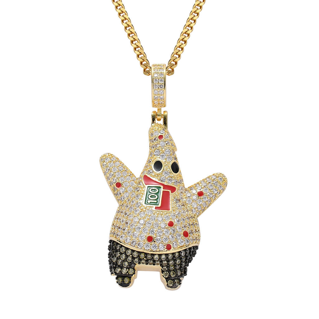 The unique design of this pendant is inspired by SpongeBob SquarePants. The SpongeBob pendant is decorated with 5A+ CZ diamonds, providing a glamorous and cool look to any hip hop fan. It is also one of the choices for kid's gift.